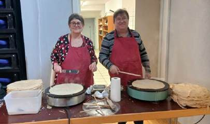 Ce dimanche 25 janvier 2026, à l’occasion de la fête patronale de Saint-Amarin, la salle du CAP a accueilli la deuxième édition du repas « crêpes ». Près de 85 convives, dont 25 jeunes, se sont retrouvés pour partager un moment de convivialité. Dès la veille, une équipe de bénévoles s’est affairée à préparer une soupe aux légumes maison, servie après le bénédicité prononcé par l’Abbé Jean-Marie Bienvenu IKOKPATA. Martine et Christophe, quant à eux, ont confectionné 320 crêpes, que chacun a pu garnir de confitures variées. Un repas simple, chaleureux, et apprécié de tous. Après le repas, place à la détente et aux divertissements. Une structure gonflable a permis aux plus jeunes de se défouler en escalades et glissades, tandis qu’un quizz animé par le Père Frédéric FLOTA, assisté des Pères Jean-Marie UHLEN et Jean-Marie Bienvenu IKOKPATA, a réuni 7 équipes mixtes (jeunes et adultes). Réflexion, rapidité et talents étaient au rendez-vous pour répondre aux questions et participer aux jeux d’adresse. L’ambiance, rythmée par la bonne humeur, a fait oublier le temps aux participants. En conclusion, le Père Frédéric et l’équipe d’animation pastorale tiennent à remercier chaleureusement :